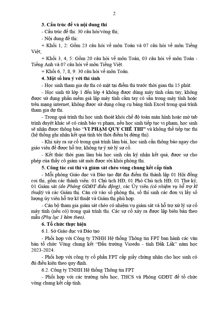 Nhằm đảm bảo tính công bằng, minh bạch cũng như tạo điều kiện để học sinh có thể tham gia thi đấu thuận lợi nhất, Sở Giáo dục và Đào tạo Đắk Lắk đã chỉ đạo các Phòng Giáo dục và các nhà trường phối hợp thành lập hội đồng trông thi, thành lập các cụm thi phù hợp với số lượng học sinh và cơ sở vật chất. Đồng thời, chỉ đạo phân công cán bộ trông coi trực tiếp và có sự giám sát gián tiếp của BTC thông qua phần mềm Zoom. Thông qua đó, góp phần tạo nên sự thành công của sân chơi Đấu trường VioEdu nói riêng và phát huy tốt truyền thống hiếu học tại địa phương nói chung.